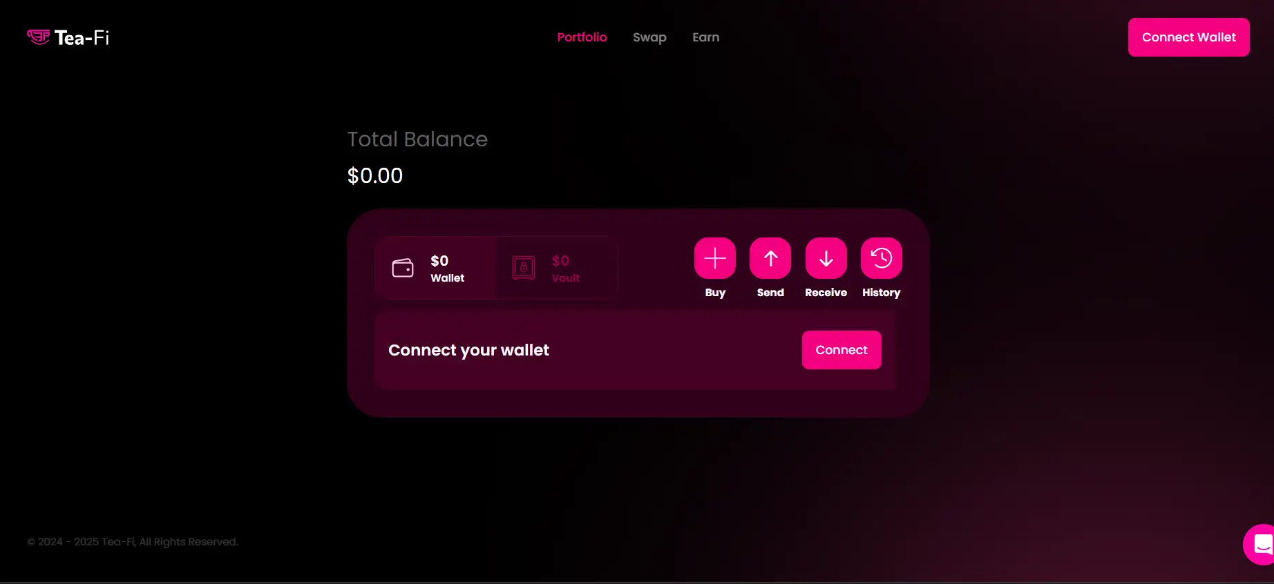 Tea-Fi is a next-generation decentralized finance (DeFi) platform built to eliminate complexity and make managing digital assets as simple as brewing a cup of tea. With an emphasis on intuitive design, self-custodial security, and frictionless user experiences, Tea-Fi enables anyone—from beginners to power users—to grow their assets without navigating fragmented DeFi tools or high technical barriers.