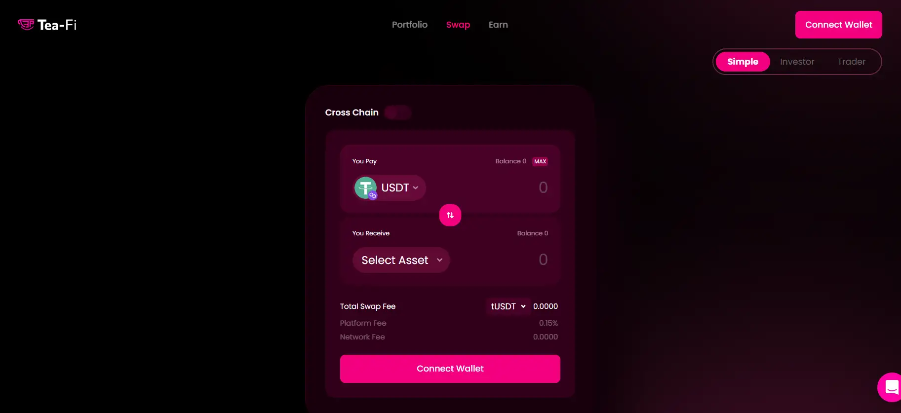 SuperSwap is a native Tea-Fi feature that combines cross-chain bridging and token swapping into a single action. Unlike traditional platforms that require manual network switching and third-party bridges, Tea-Fi's SuperSwap handles all processes in the background. The result is fast, seamless multi-chain swaps from a unified interface, ideal for users seeking efficient DeFi asset movement without friction.