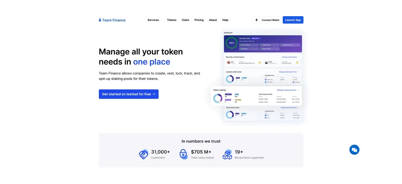 - Multi-Blockchain Support: With support for over 23 blockchains, Team Finance is highly versatile and can be used by projects operating on a wide range of chains.