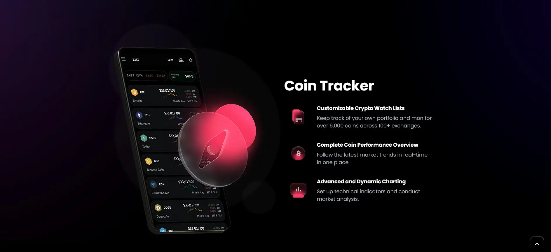- Explore Market Data: Use the app’s tools to explore real-time crypto prices, market cap stats, and detailed charts for over 2.4 million altcoins.