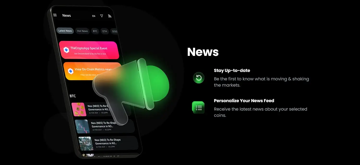 The Crypto App aggregates breaking cryptocurrency news and market analysis from top media providers, ensuring you stay informed about the latest developments in the crypto world. Check out the news section on the app.