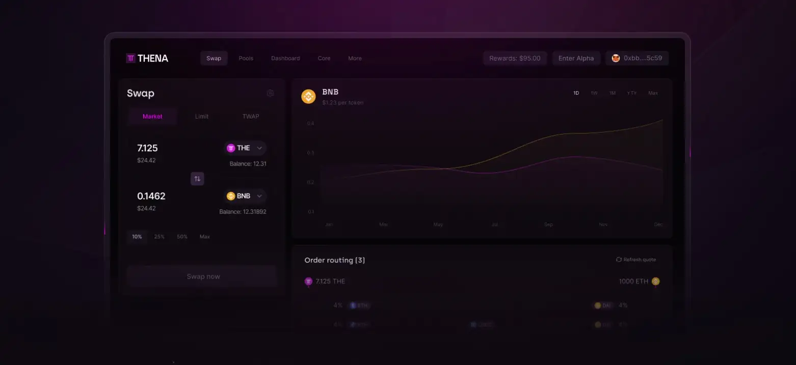 THENA was launched in response to the increasing demand for decentralized trading solutions that are secure, efficient, and user-friendly. Since its inception, THENA has made significant strides in developing a comprehensive DEX platform that addresses the key challenges faced by users in the DeFi space.