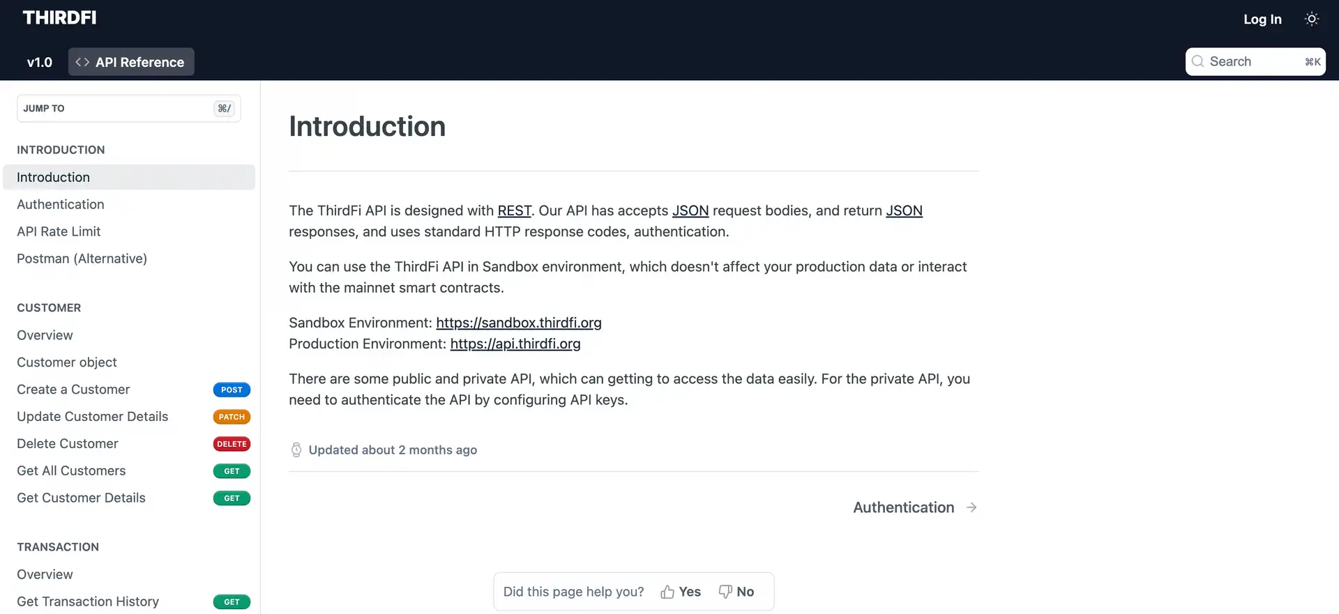 - Refer to Documentation: For detailed guides on using ThirdFi's platform and APIs, refer to the ThirdFi documentation. The documentation provides step-by-step instructions and best practices to help you get started.