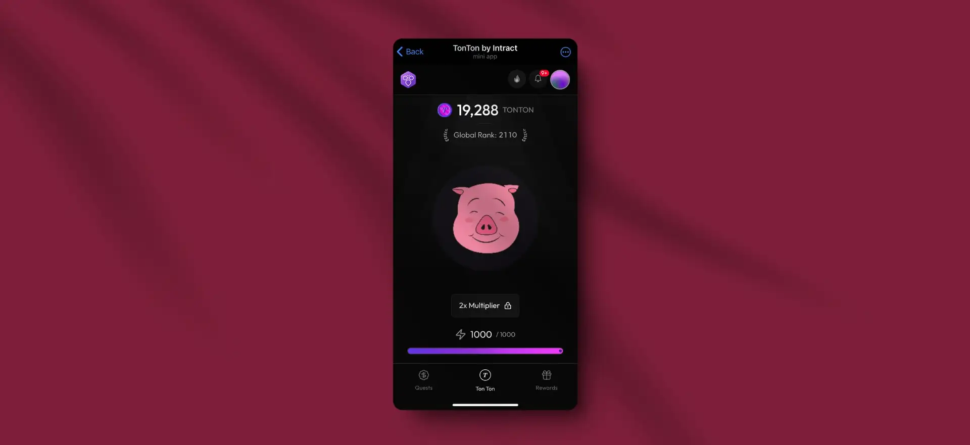 TonTon is a tap-to-earn mini app developed by Intract, a platform that focuses on blending blockchain technology with interactive gaming. In this game, users are introduced to TonTon, a charming piggy character who sets out on an adventure to save her fellow piggy friends. Players engage with the game by tapping to boost TonTon's powers, completing quests, and earning rewards, such as airdrops and tokens from partnered Web3 projects.