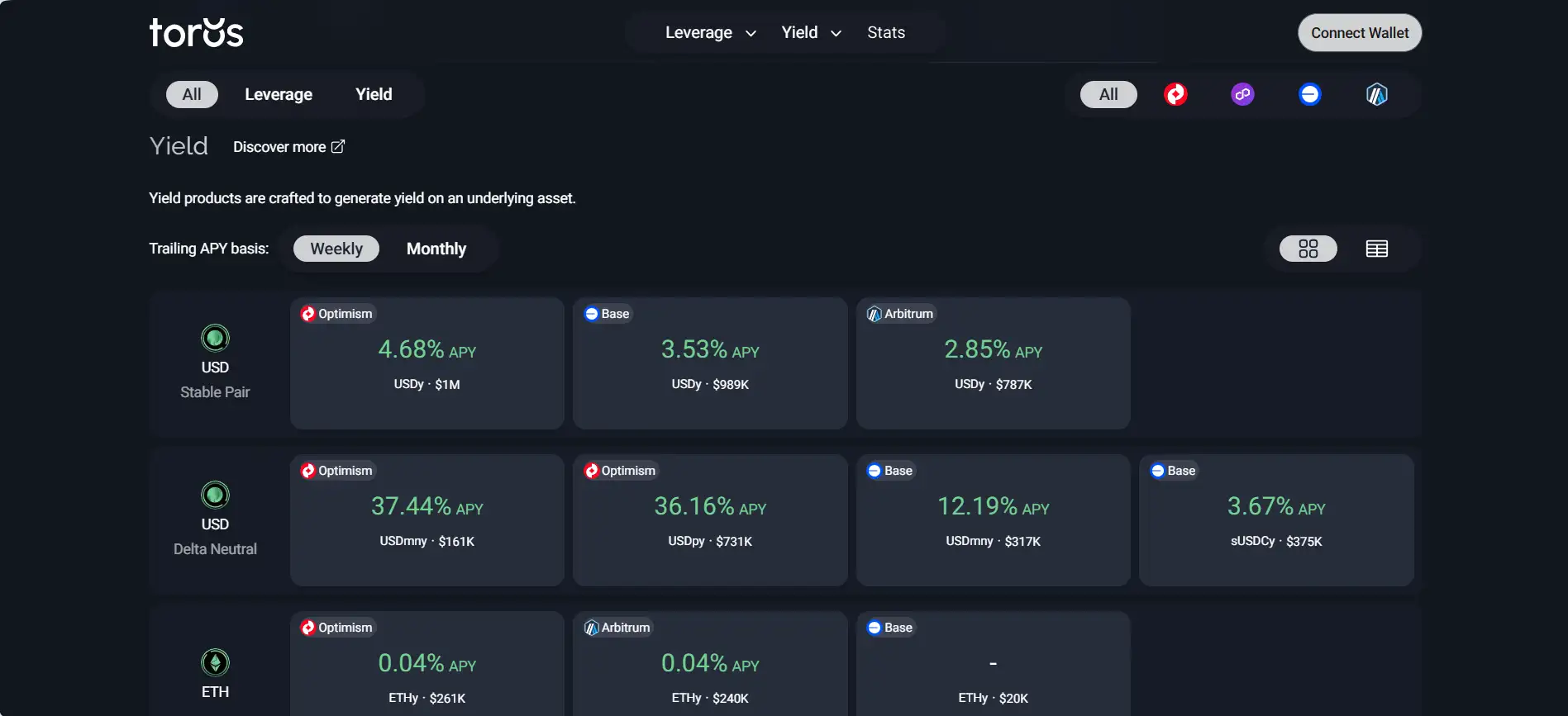 Whether users are seeking to amplify exposure to BTC or ETH without the risk of liquidation, or earn stablecoin-based delta-neutral yields, Toros vaults automate every function—position management, compounding, rebalancing—freeing users from manual strategies. Toros’ unique value lies in minimizing risk while maximizing capital efficiency, using dynamic smart contract logic that continuously optimizes user positions across multiple blockchains, including Optimism, Arbitrum, Base, and Polygon.