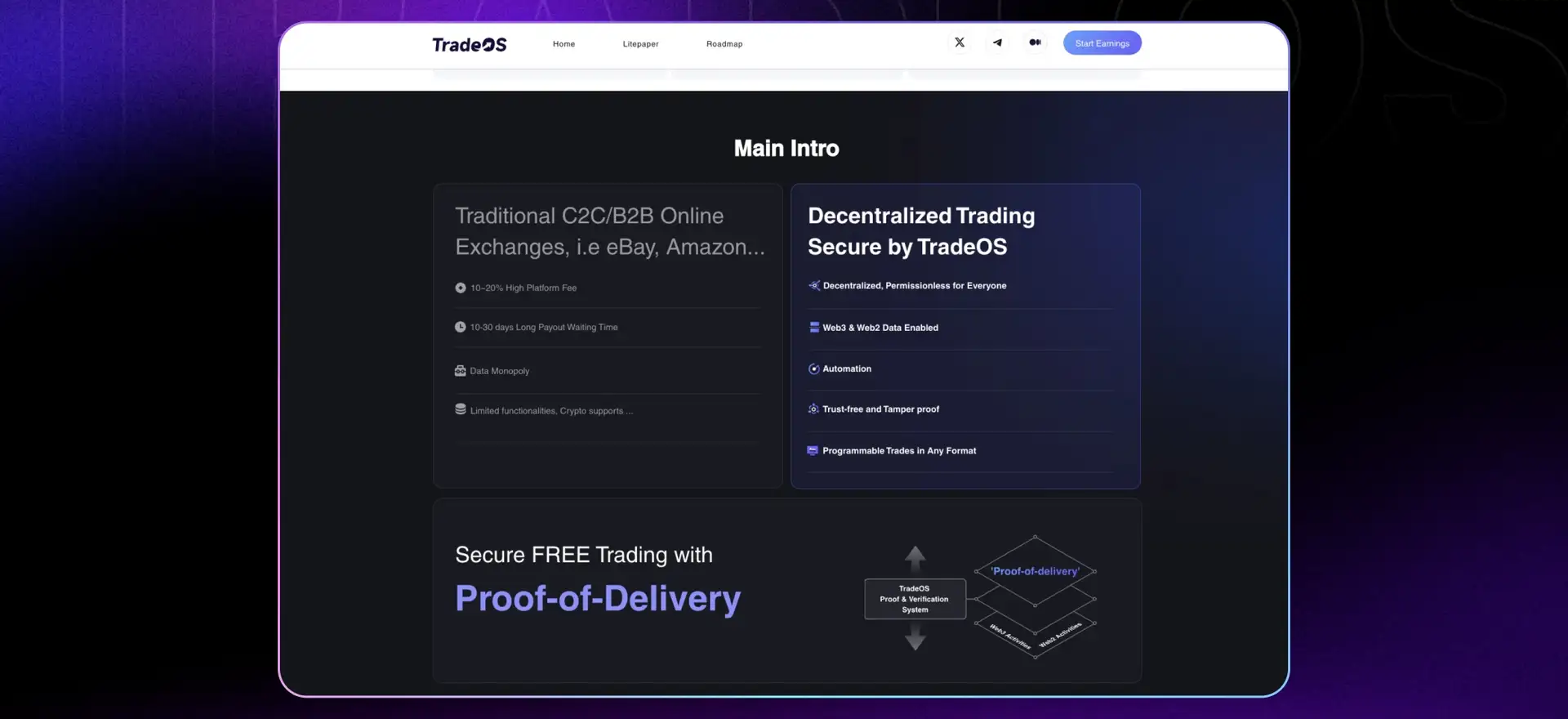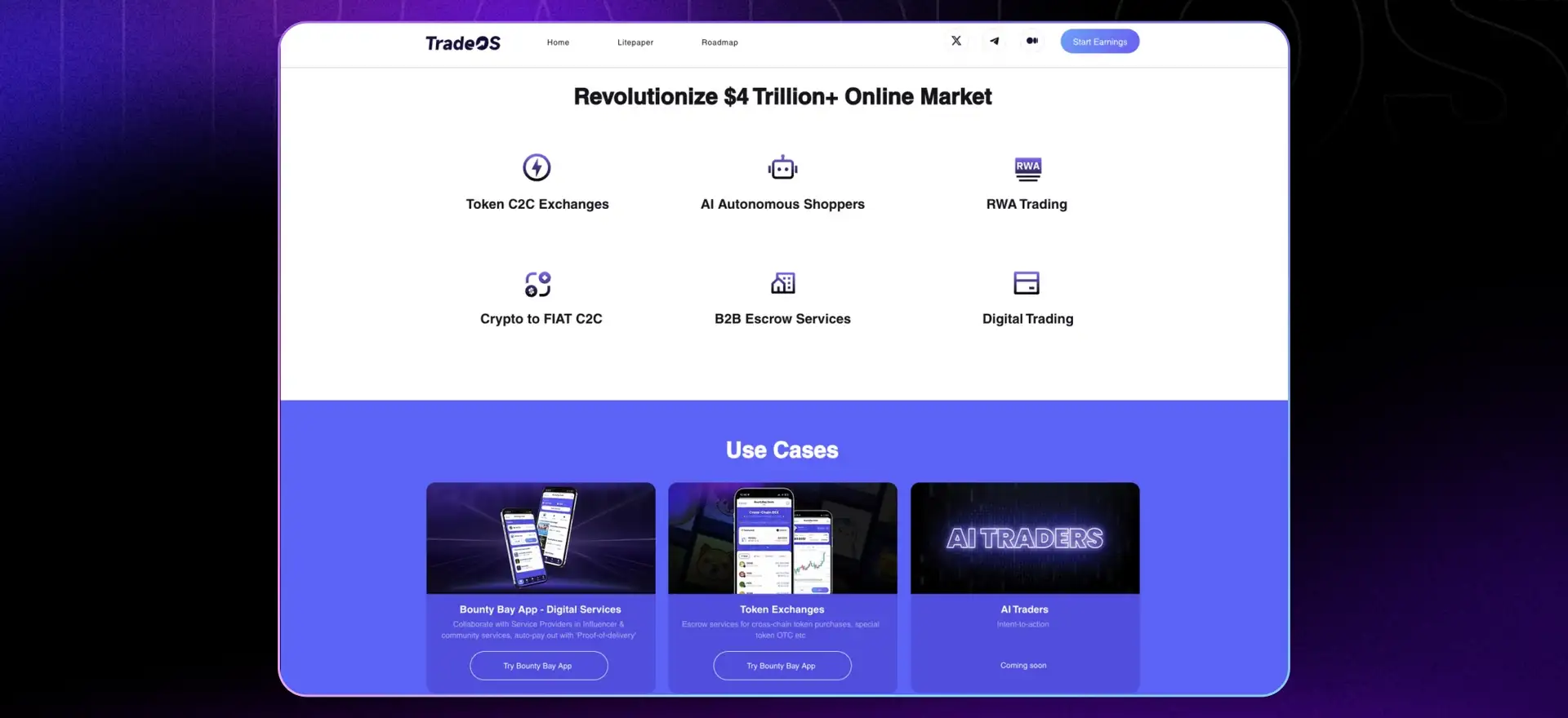 TradeOS is a next-generation decentralized protocol designed to revolutionize peer-to-peer (P2P) trading by eliminating the need for intermediaries and manual trust systems. Developed by BountyBay Labs and backed by TON Ventures and Animoca Brands, the platform leverages cutting-edge cryptographic technologies like zk-TLS, TEE-TLS, and smart contracts to automate secure online transactions between global users. TradeOS addresses inefficiencies in traditional C2C and B2B markets, such as high platform fees, long payout delays, and data monopolies, by enabling trustless and permissionless digital commerce.