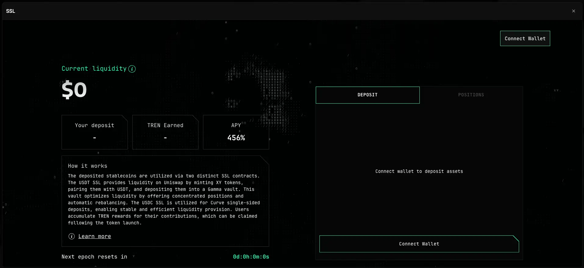 - Step 1: Connect Your Wallet: Visit Tren Finance and connect a supported wallet such as MetaMask, WalletConnect, or any EVM-compatible wallet.