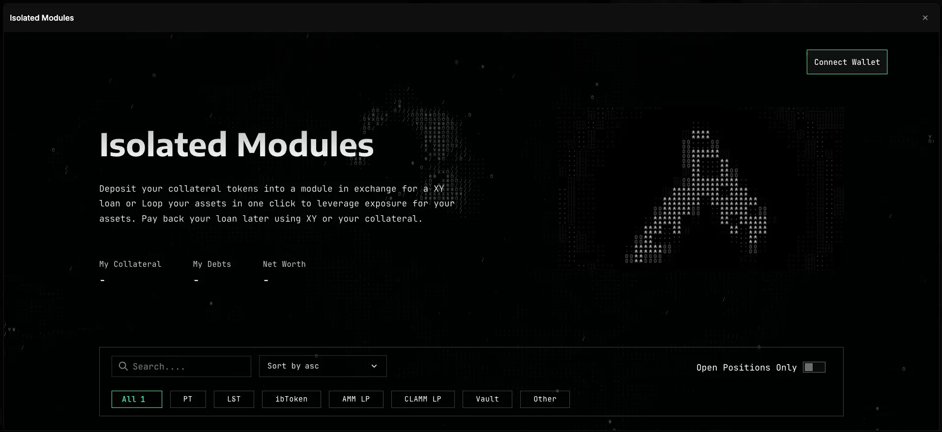 - Step 2: Choose a Strategy: Decide how you want to interact with the protocol. You can use LP Tokens like Curve 3pool to collateralize and borrow XY, Money Market Tokens such as aWETH from Aave to gain access to low-interest liquidity or delta-neutral positions, or Restaked & PT Tokens to amplify yield with up to 10x looping leverage.