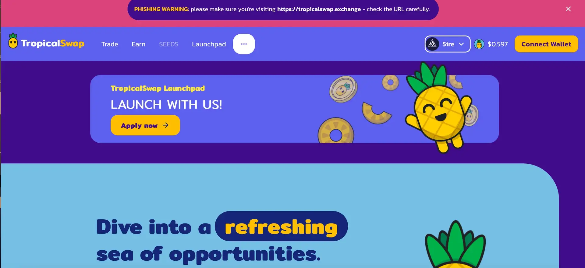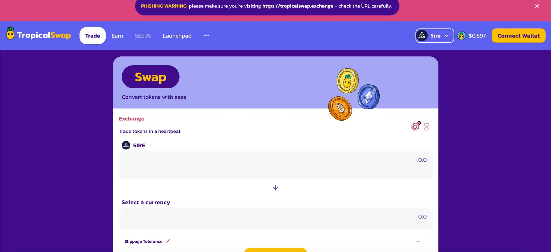 - Visit the website: Go to TropicalSwap Exchange and familiarize yourself with its layout.