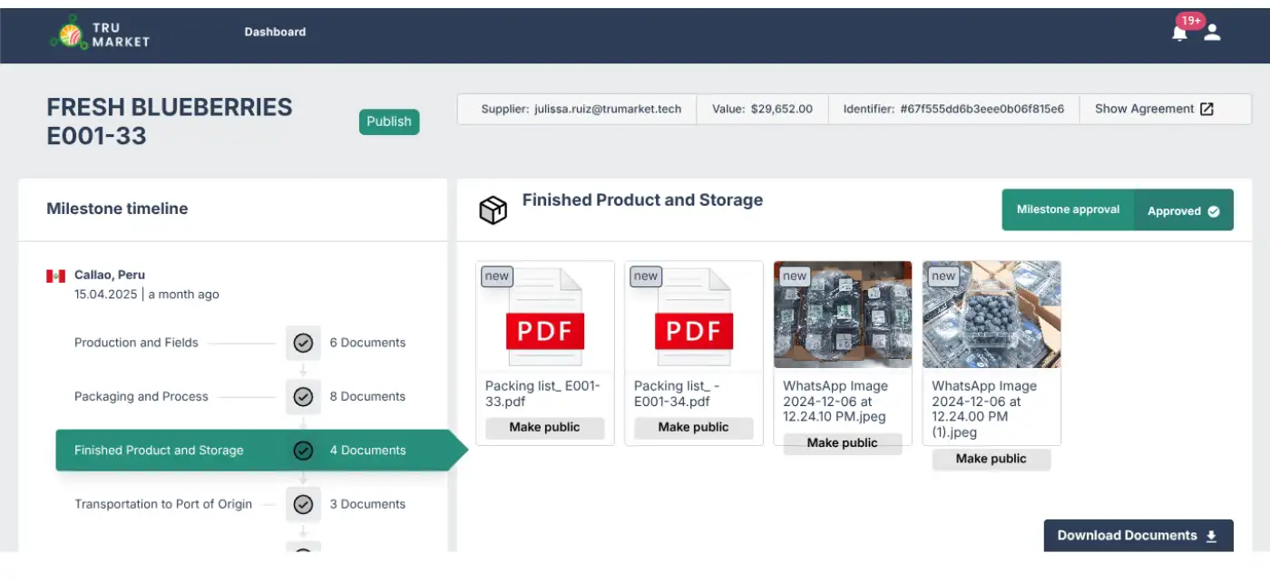 TruMarket is a blockchain-based agricultural trade finance platform that tokenizes real agricultural commodities and trade agreements, creating liquid investment opportunities for web3 participants. TruMarket has successfully processed over $2 million in agricultural trades, demonstrating proven market validation and operational capability.