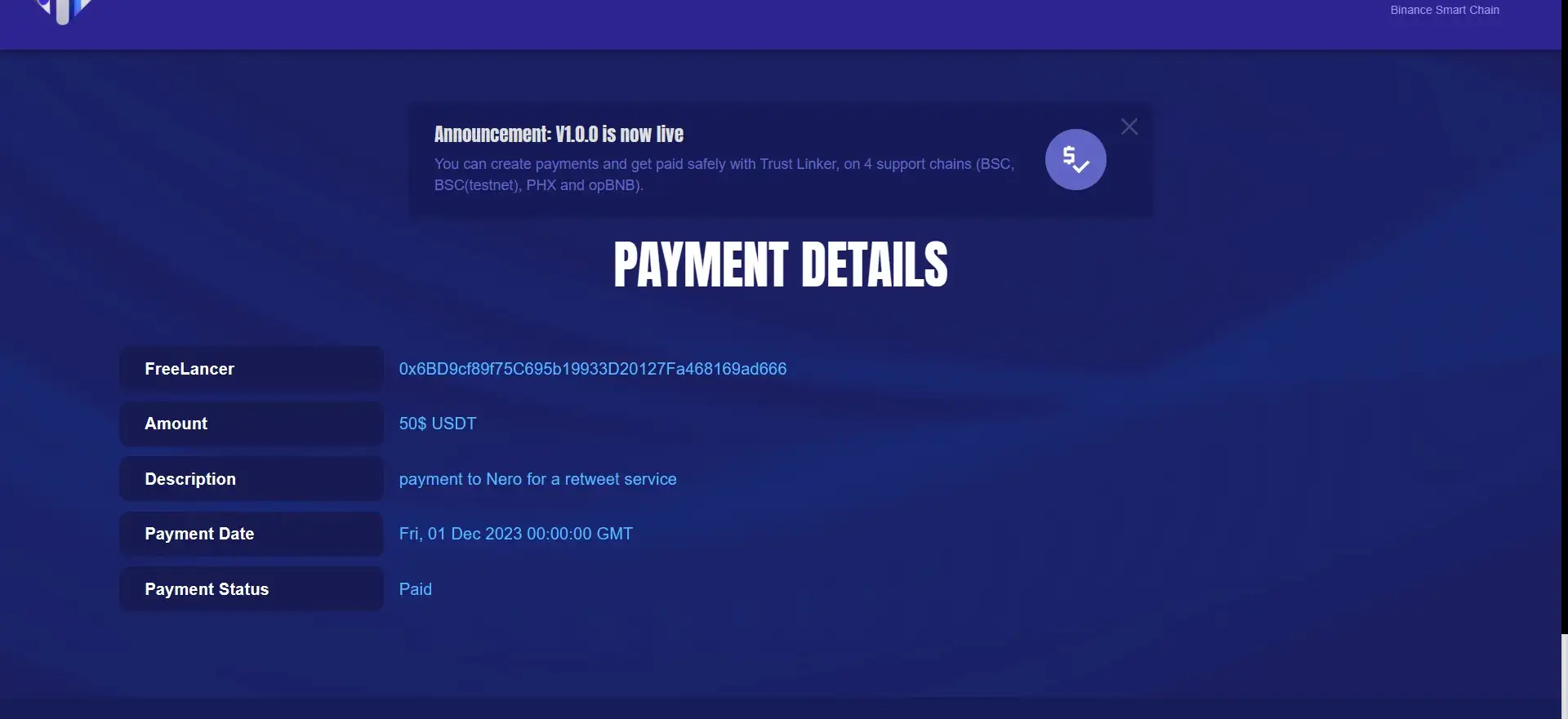 Since its inception, TrustLinker has quickly gained traction within the freelance community and among digital contractors who need a reliable system for handling payments. The platform’s initial release, TrustLinker V1, was built on both the Binance Smart Chain (BSC) and the Phoenix Blockchain (PHX), leveraging the strengths of these networks to provide fast, low-cost, and secure transactions. This multi-blockchain approach not only ensures redundancy but also caters to a broader audience by supporting different blockchain preferences.