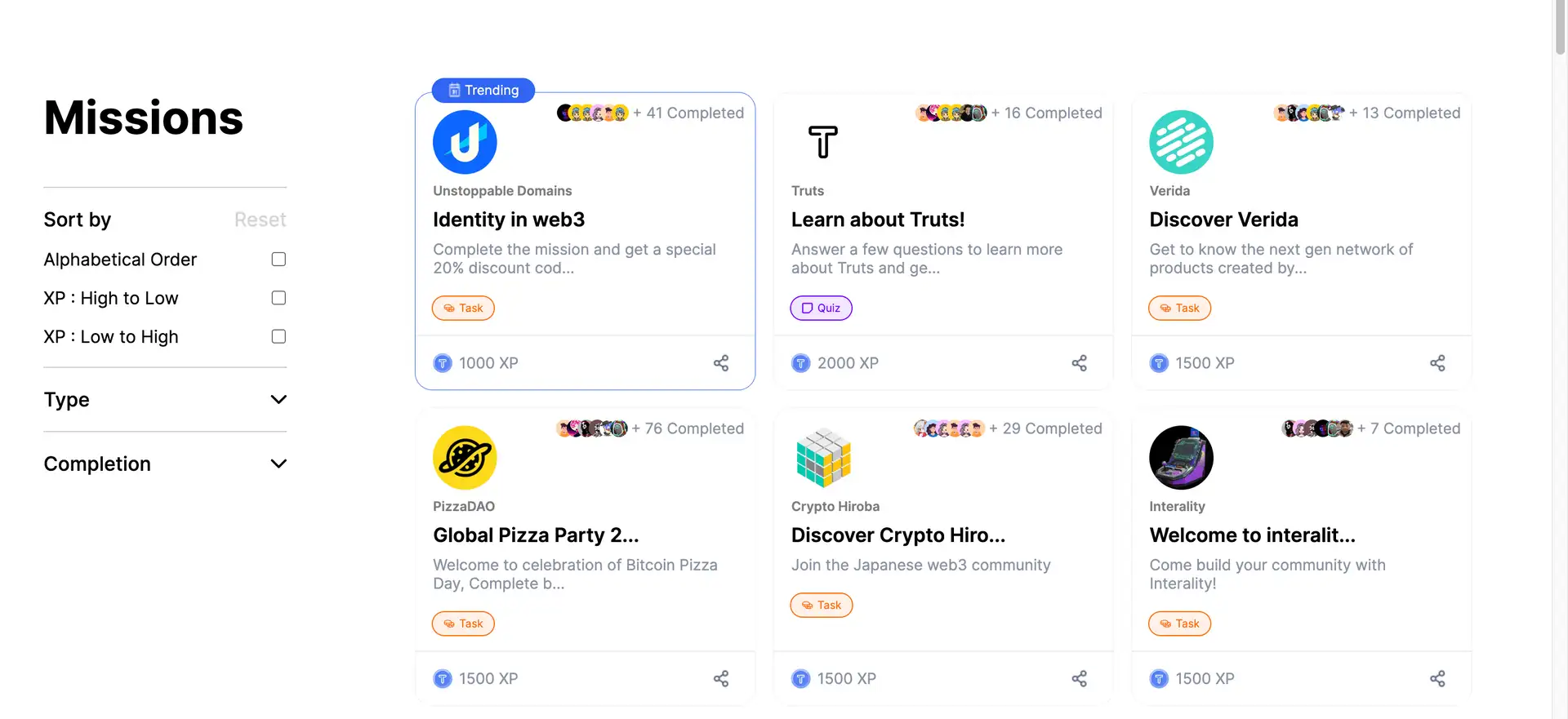 - Mission-Based Reward System: Truts gamifies the engagement process through its mission-based system. Users can complete various tasks or activities related to different Web3 projects to earn XP and rewards. This approach makes the discovery process more interactive and rewarding.