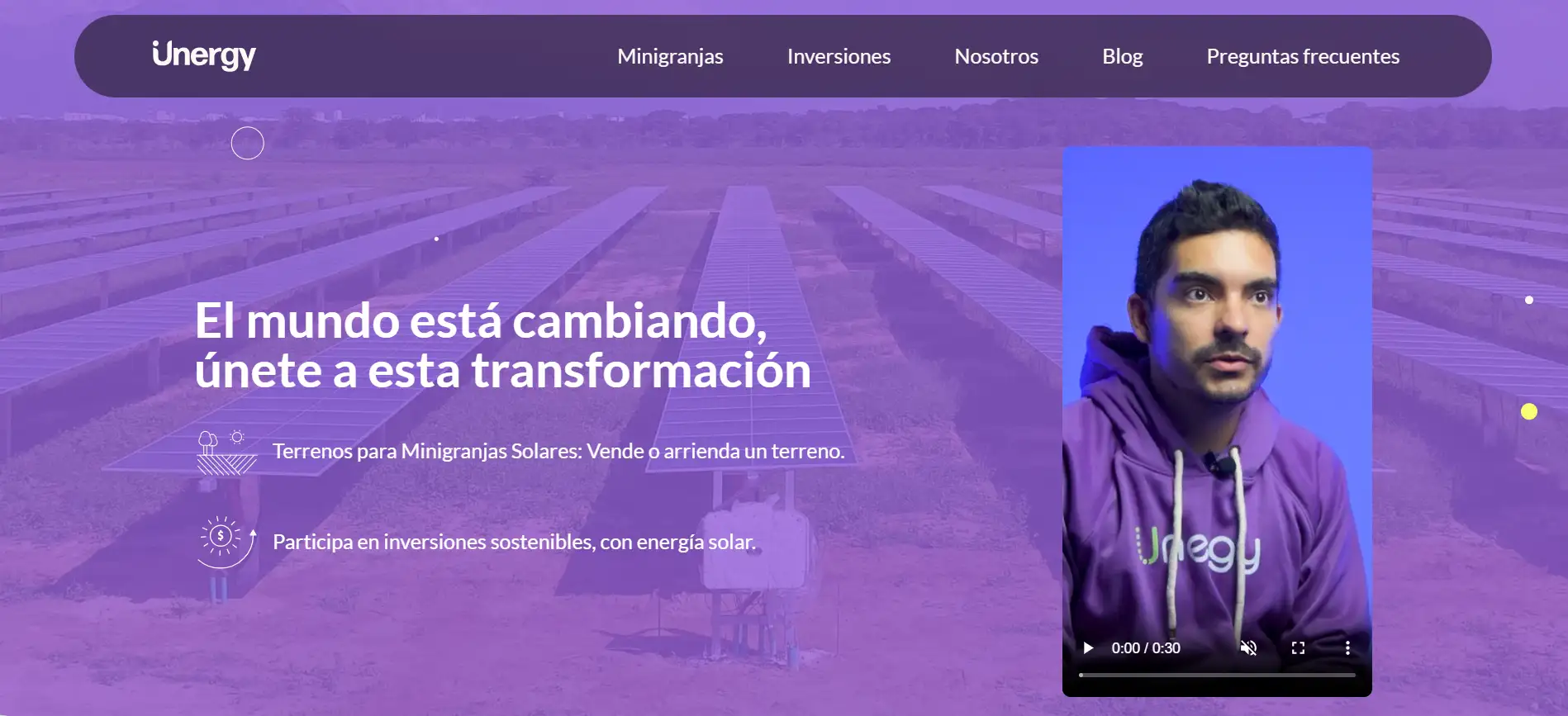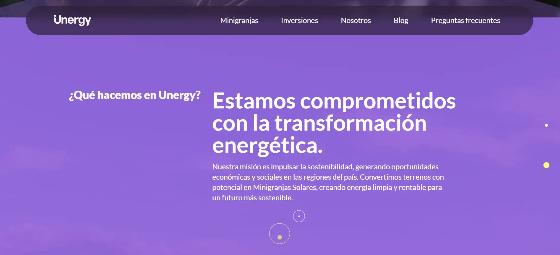 Unergy is a Colombian public service company focused on transforming underutilized land into productive solar mini-farms (Minigranjas Solares), democratizing access to clean energy and enabling sustainable investments. Through a decentralized model, Unergy empowers landowners to lease or sell their land for solar energy projects, while providing investors with long-term, impact-driven returns.
