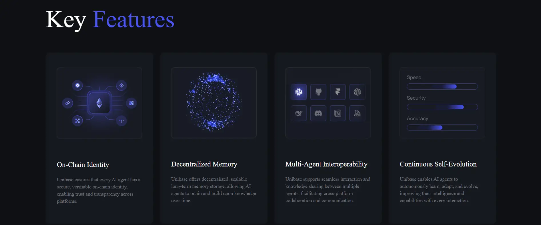 Unibase provides a set of powerful features that address critical gaps in current AI infrastructure: