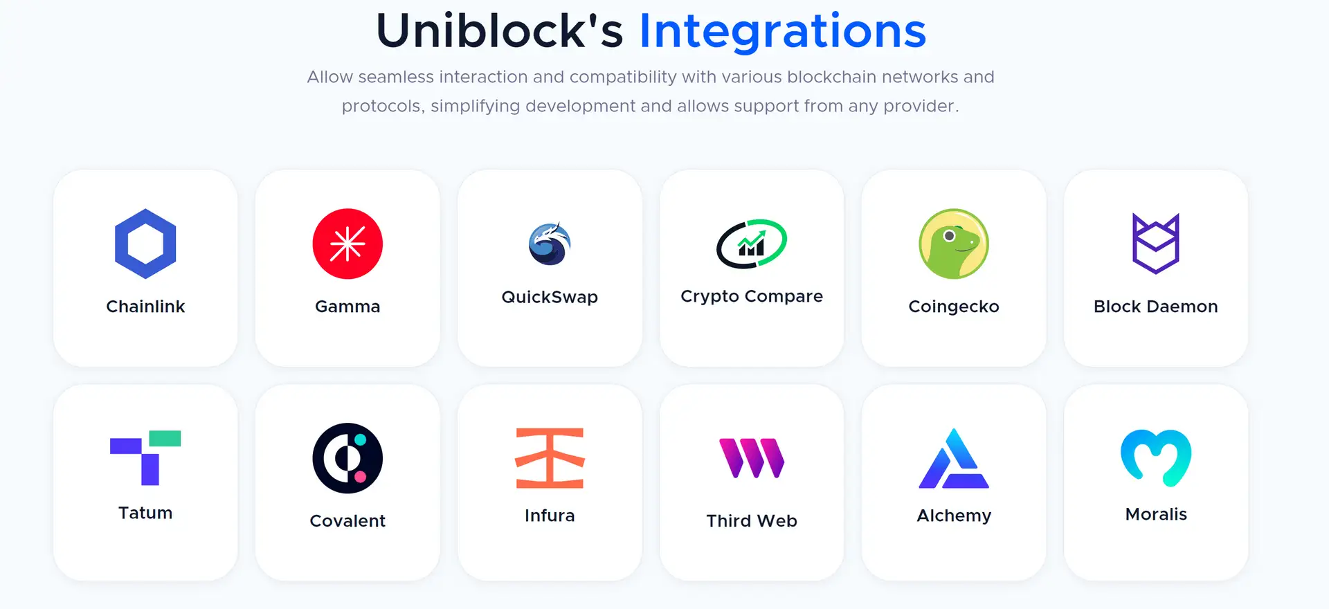 Uniblock’s platform is designed to handle high traffic loads, making it suitable for applications that require large-scale data processing or need to maintain high availability. The platform’s integration with leading Web3 providers such as Alchemy, Moralis, and QuickNode further enhances its value proposition by offering developers access to best-in-class tools and services within a single platform.