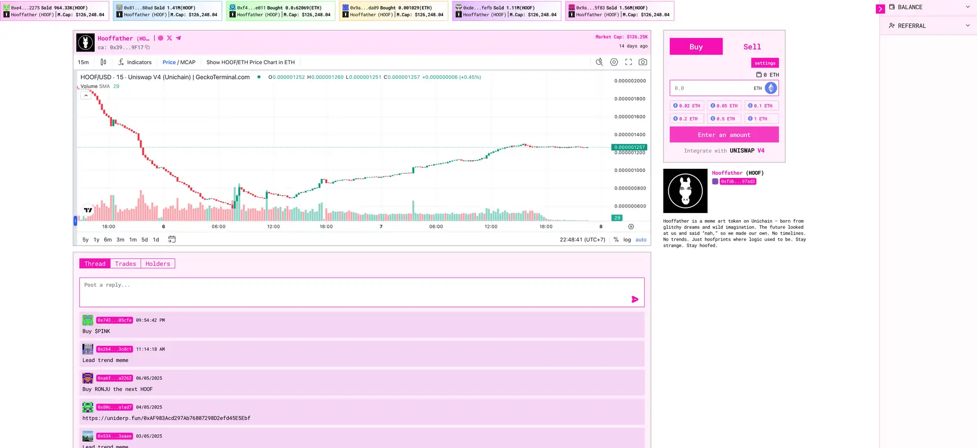 By integrating directly with Uniswap V4 Hooks and operating on Unichain, UniDerp provides a seamless and highly automated infrastructure for deploying, managing, and trading ERC-20 tokens. Users benefit from a rich suite of features including an AI-powered meme detection engine, real-time token deployment tools, a lifetime rewards system for creators and referrers, and a robust anti-rug design. UniDerp.Fun sets a new standard for decentralized and community-centric token ecosystems.
