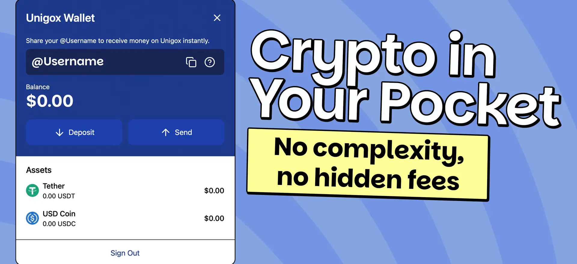 - Create a Wallet: Visit Unigox and create a wallet with email, social login, or connect via Metamask, Rabby, or Phantom.