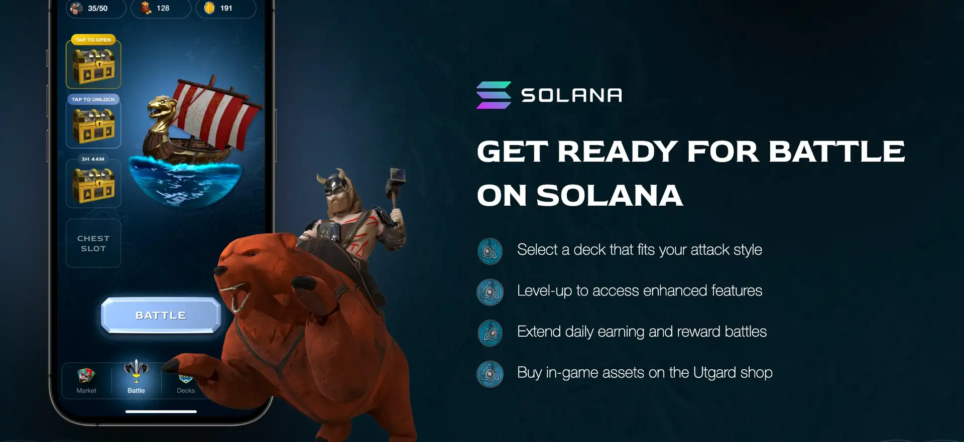 - Download the App: Search “Utgard” in the iOS, Android, or Solana dApp Store and install the game.
