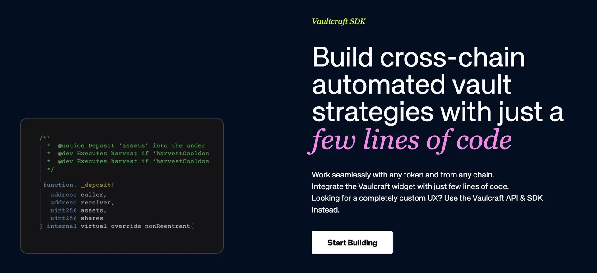 VaultCraft is a pioneering platform in the decentralized finance (DeFi) sector, dedicated to optimizing yield farming strategies for its users. Founded by a team of blockchain and finance experts, VaultCraft seeks to simplify the complexities of DeFi, making high-yield opportunities accessible to a broader audience. The platform automates yield generation using sophisticated algorithms and smart contracts, ensuring users can achieve maximum returns with minimal effort.