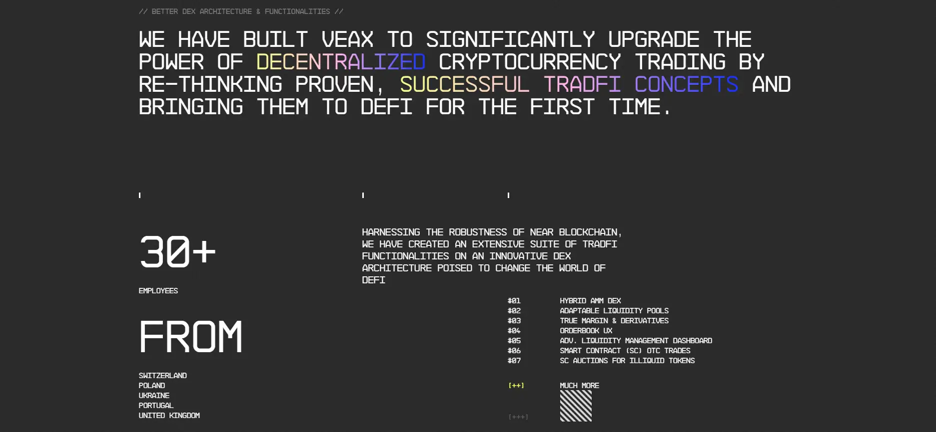 The project is backed by a diverse team across Switzerland, Portugal, Poland, Ukraine, and the UK, and it has already reached substantial traction on NEAR, with over 64,000 users, 27,000 transactions, and more than $51 million in trading volume. Its growing ecosystem is supported by active community channels, including Twitter, Telegram, and Discord. Competitors to Veax include other AMM-focused DEXs such as Uniswap, Curve, and SushiSwap, but Veax differentiates itself through unique TradFi functionalities and deeper liquidity innovation.