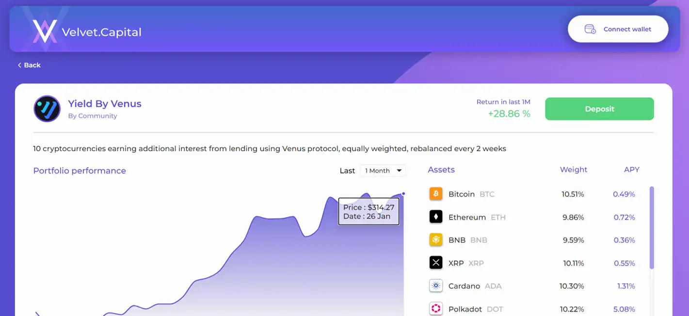 Velvet.Capital is a forward-thinking decentralized finance (DeFi) platform designed to automate and optimize crypto investments and portfolio management. Its mission is to simplify and democratize access to sophisticated financial tools, making them accessible to both novice and seasoned investors. By leveraging the power of smart contracts and blockchain technology, Velvet.Capital ensures transparency, security, and efficiency in managing diversified crypto portfolios. The platform seeks to eliminate the complexities and barriers associated with traditional investment management, promoting broader adoption of decentralized financial services.