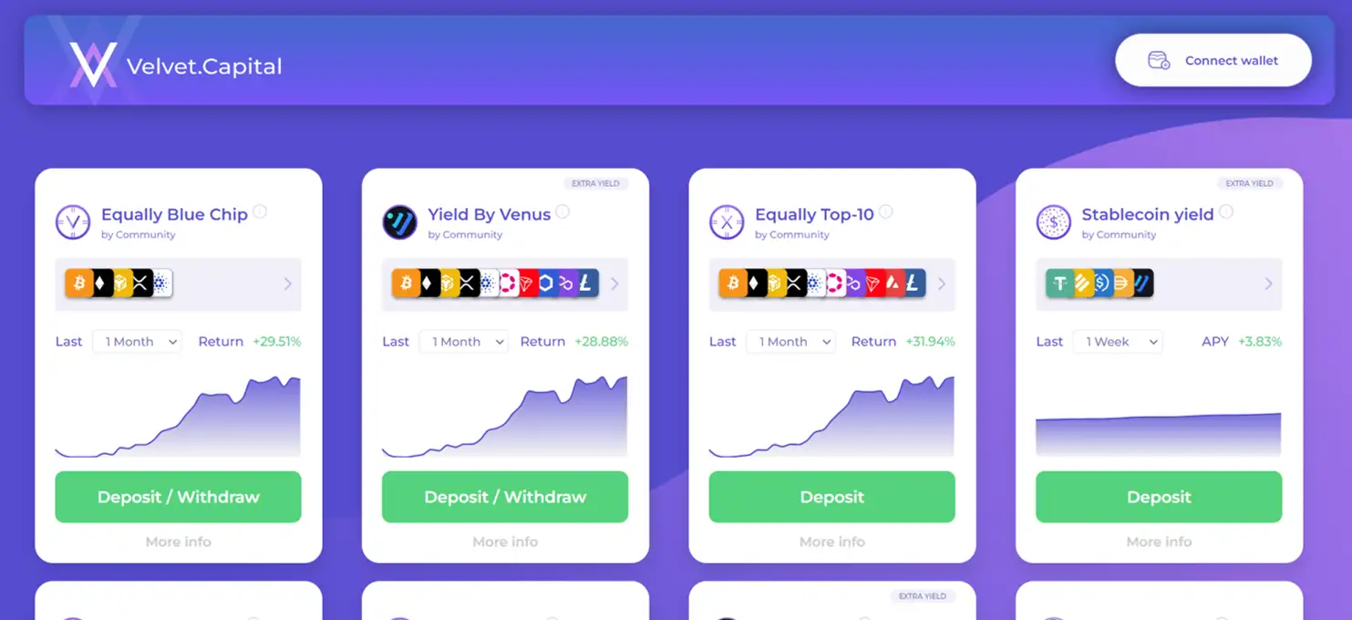 Velvet.Capital supports a wide range of cryptocurrencies, allowing users to diversify their portfolios across various assets and reduce exposure to single-asset risks.