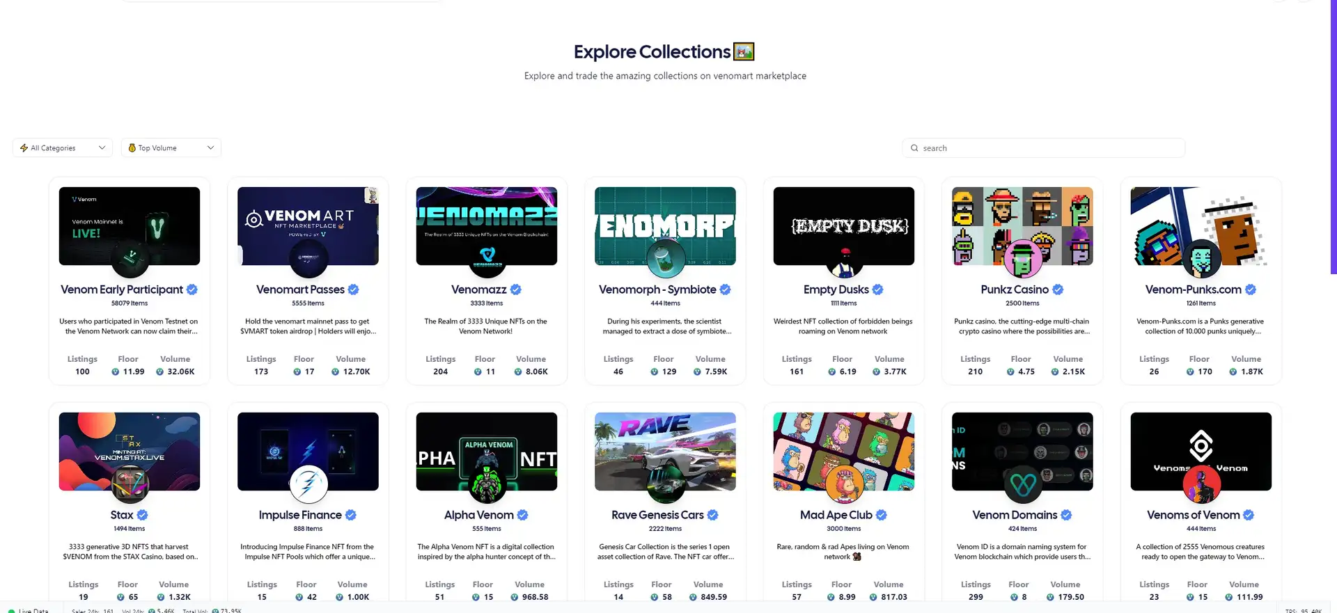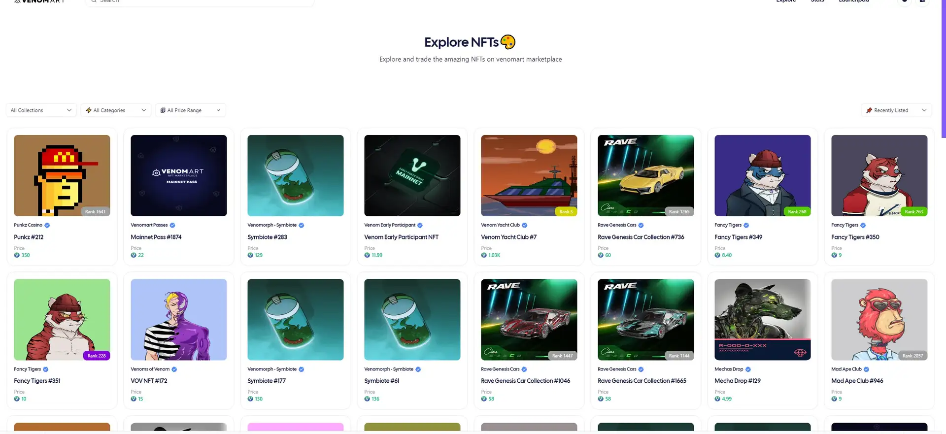 - Explore the Marketplace: Once your account and wallet are set up, explore the Venomart marketplace. Browse through various NFT collections, filter by categories, and check out featured artists and trending assets.