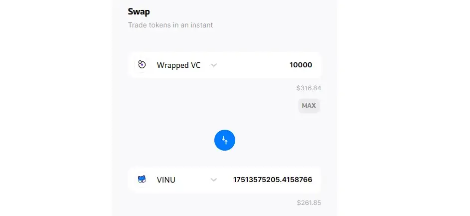 VinuSwap is the primary decentralized exchange within the VinuChain ecosystem, offering a comprehensive platform for users to engage in various DeFi activities. The exchange facilitates the seamless swapping of tokens, staking, and yield farming, enabling users to earn rewards by providing liquidity to the platform.