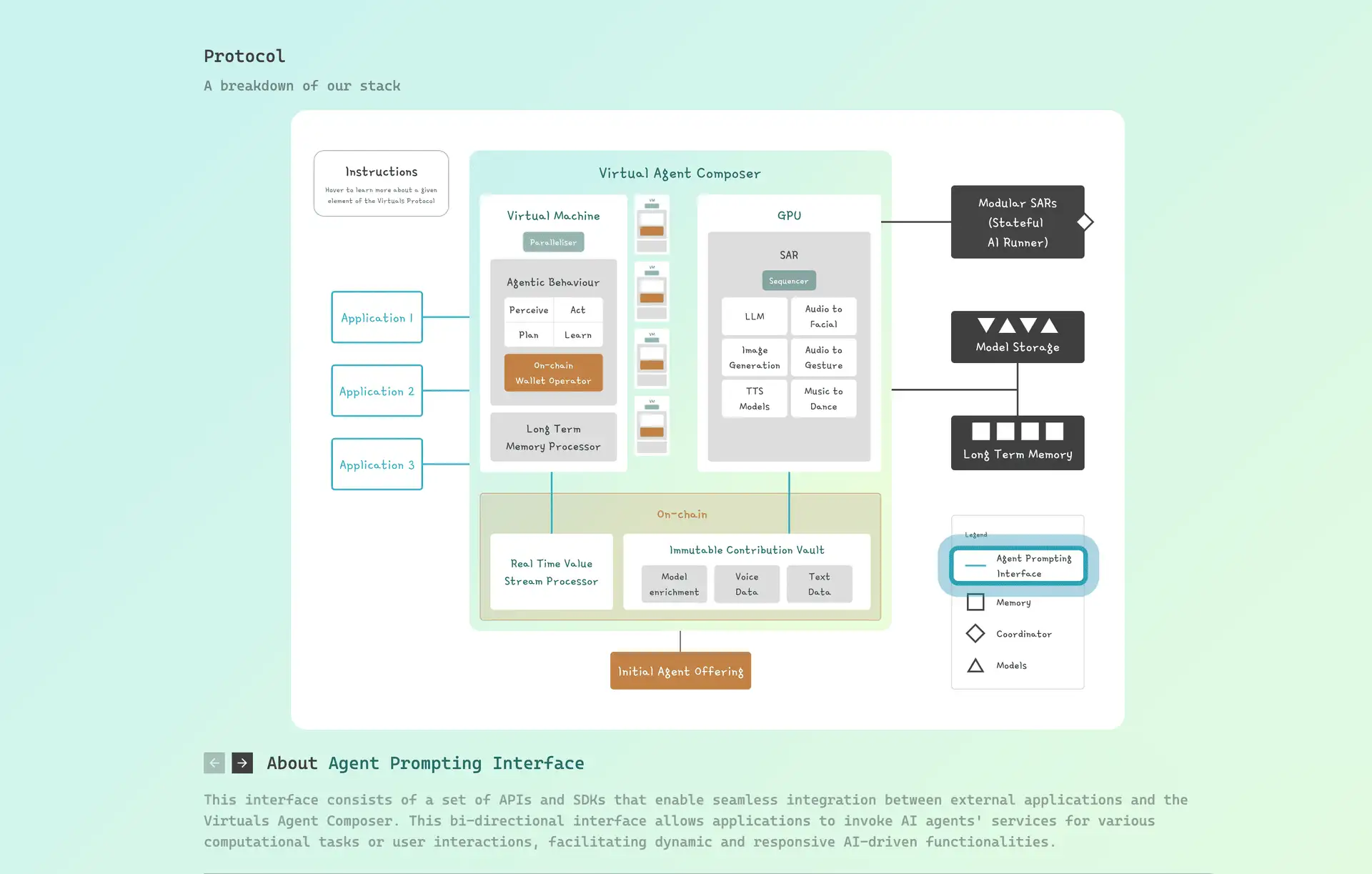 Virtuals Protocol is a groundbreaking platform designed to revolutionize how users interact with artificial intelligence (AI) in the realms of gaming, entertainment, and virtual environments. By combining the power of blockchain technology with AI, the platform enables the creation, co-ownership, and monetization of AI-driven agents known as VIRTUAL Agents. These agents can perform a wide range of tasks, from executing complex interactions in virtual worlds to managing on-chain wallets, making them versatile tools for consumer and enterprise applications. The focus on decentralization ensures transparency and fairness, giving the community a stake in the development and success of these AI agents.