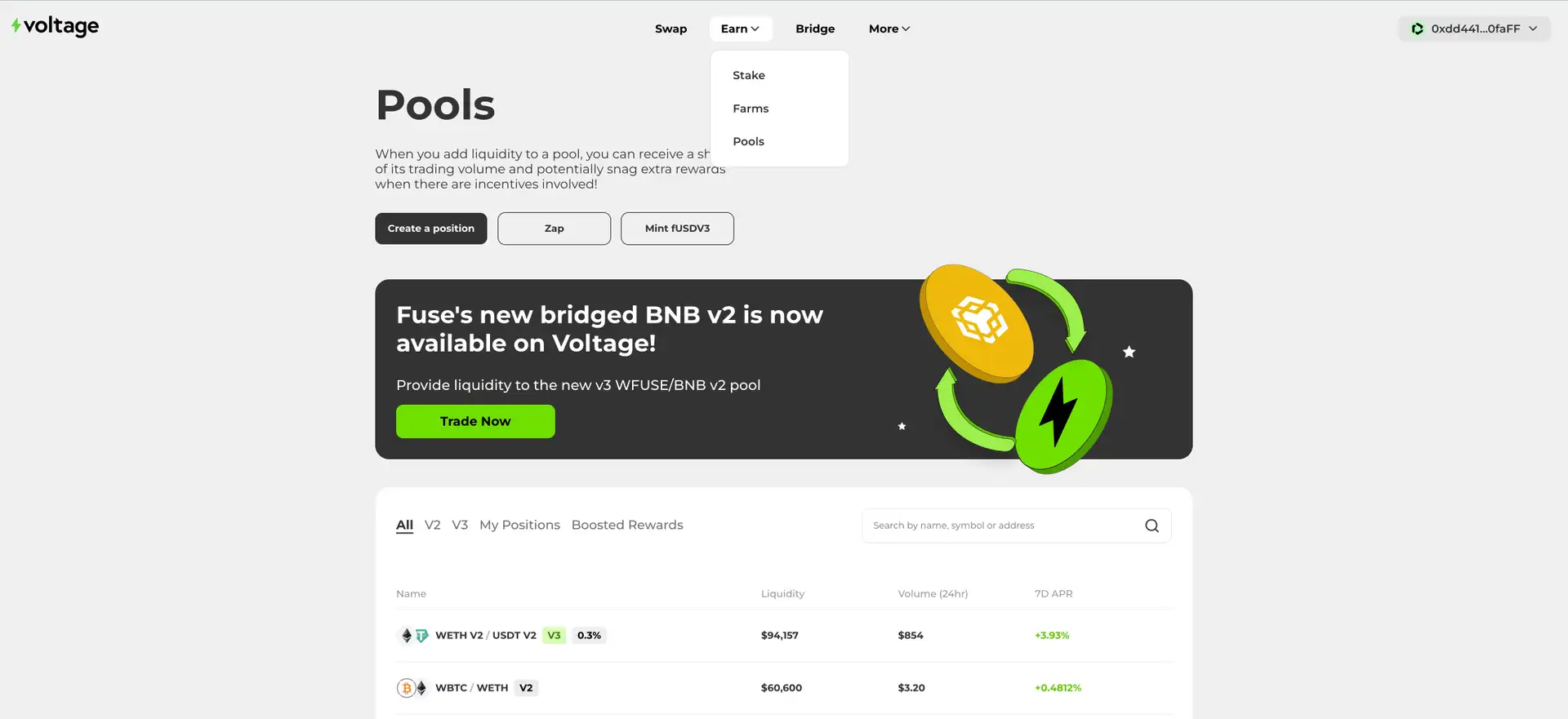 - Leverage Yield Farming and Staking: Voltage Finance offers multiple pools where users can stake their tokens to earn rewards. Explore the available options and select a pool that aligns with your strategy.