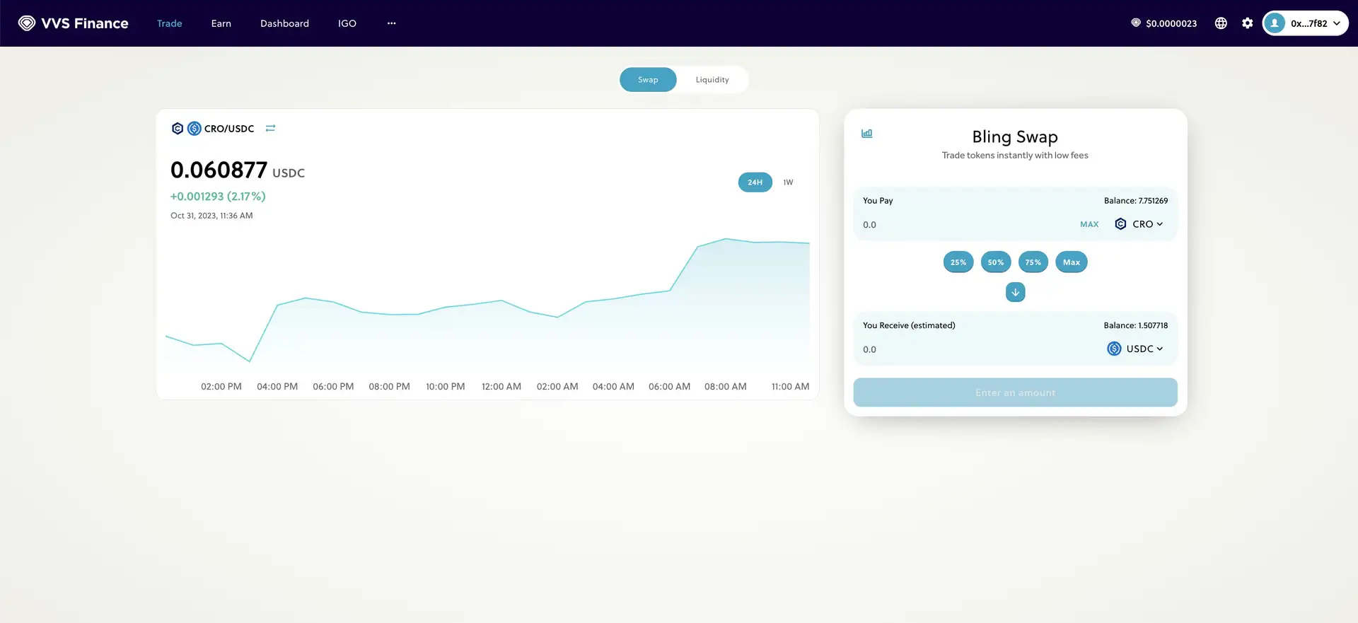 - Integration with Cronos: Leveraging the Cronos blockchain, VVS Finance provides faster and cheaper transactions compared to other platforms. This integration ensures that users can trade and stake with minimal transaction costs and delays.