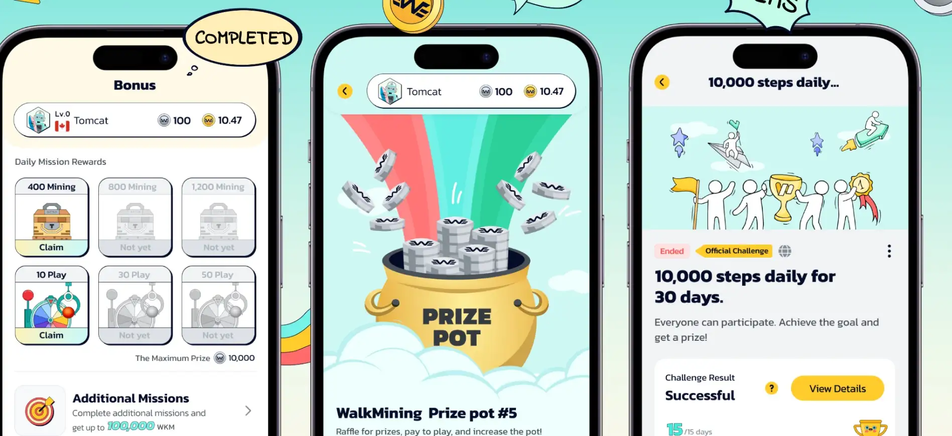- Accessible & Inclusive: Unlike other M2E platforms that require expensive NFT purchases, WalkMining allows users to participate with a smartphone or a wearable device.