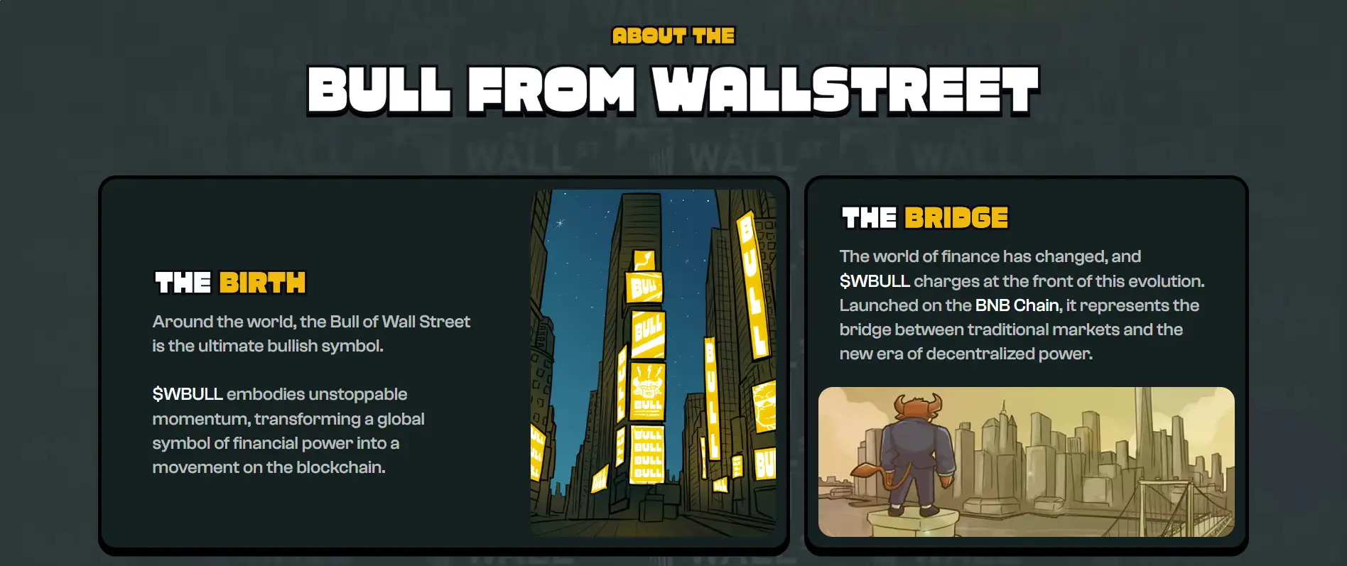 Wall St. Bull is a bold memecoin initiative on the BNB Smart Chain that fuses legacy financial symbolism with the energy of decentralized communities. At the heart of the project is $WBULL, a token that reinterprets the iconic Wall Street bull for the Web3 generation. The bull represents strength, optimism, and relentless momentum—traits that the project infuses into every aspect of its presence in the blockchain space.