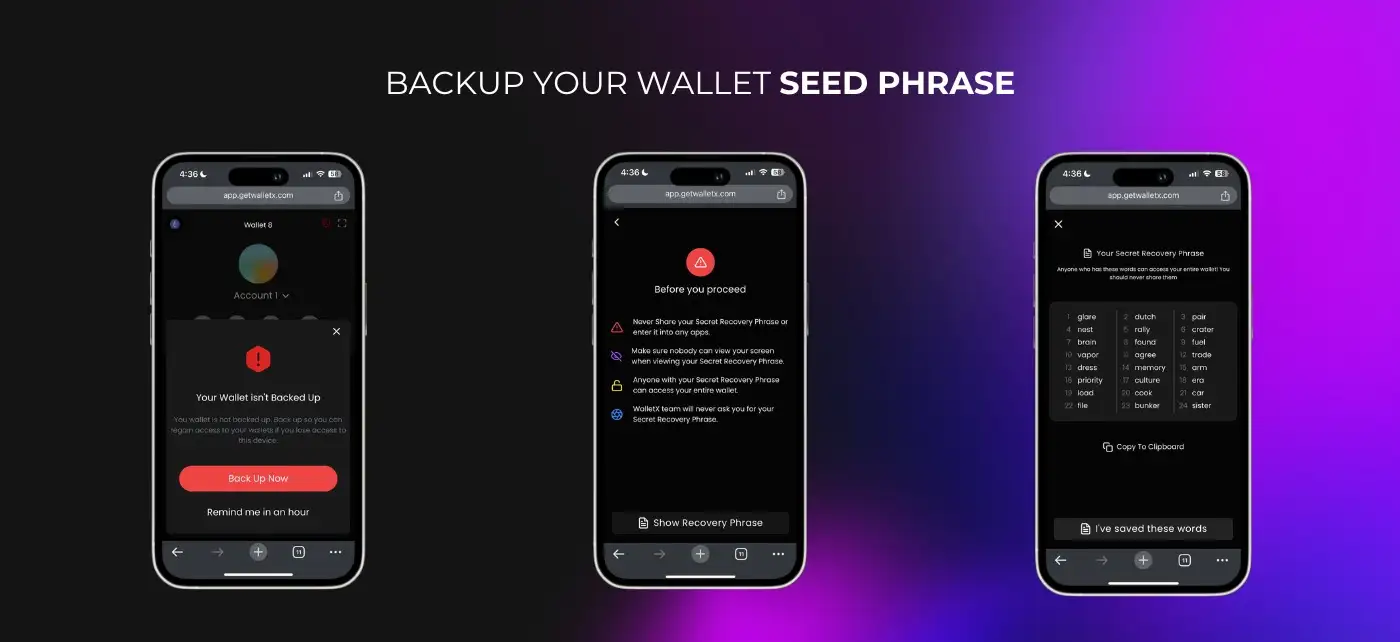 If you lose your WalletX recovery phrase, you will not be able to restore your wallet, as WalletX follows a non-custodial security model. This means no one—not even the WalletX team—has access to your recovery phrase.