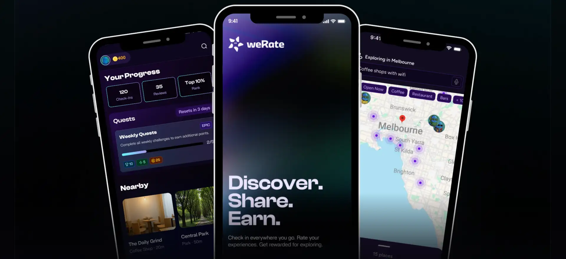 Meet weRate — the app that rewards real-world discovery. Check in at places you visit, share authentic reviews, and climb seasonal leaderboards while your in-app buddy levels up.