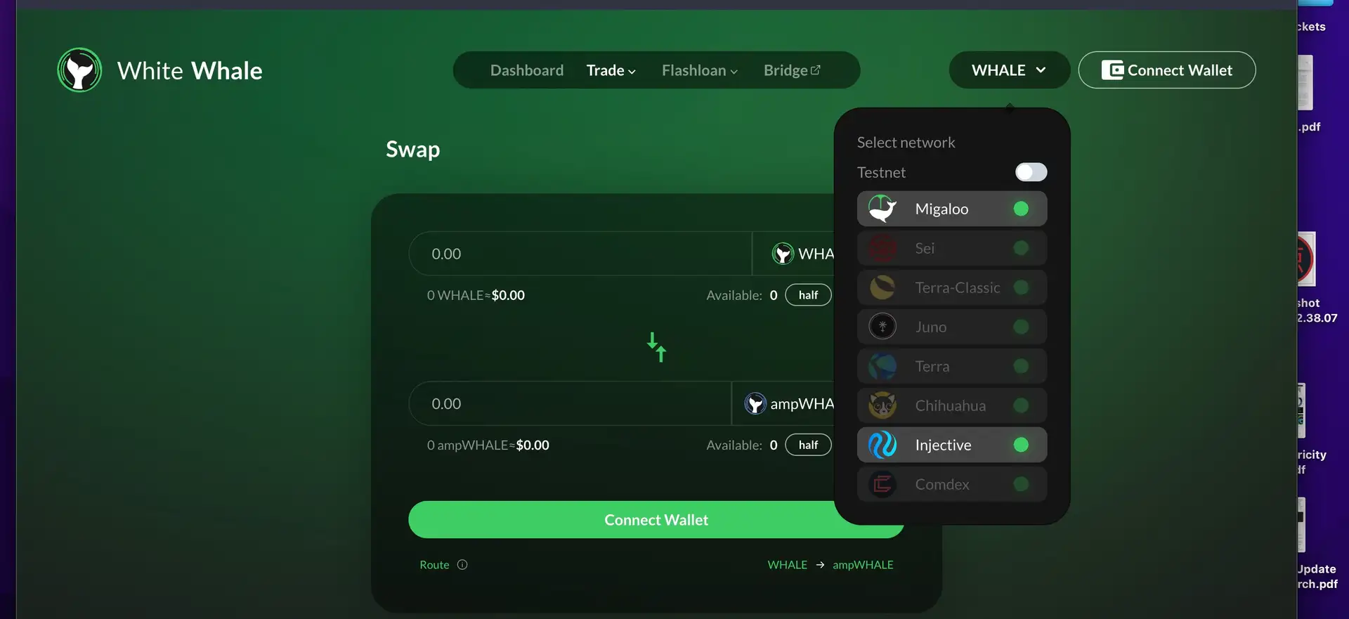 - Interchain Compatibility: The platform is integrated with multiple networks, including Terra 2.0, Injective, Chihuahua, Juno, Comdex, Stargaze, and Mars. This interchain compatibility enhances the versatility and reach of the Whale Token within the DeFi ecosystem.