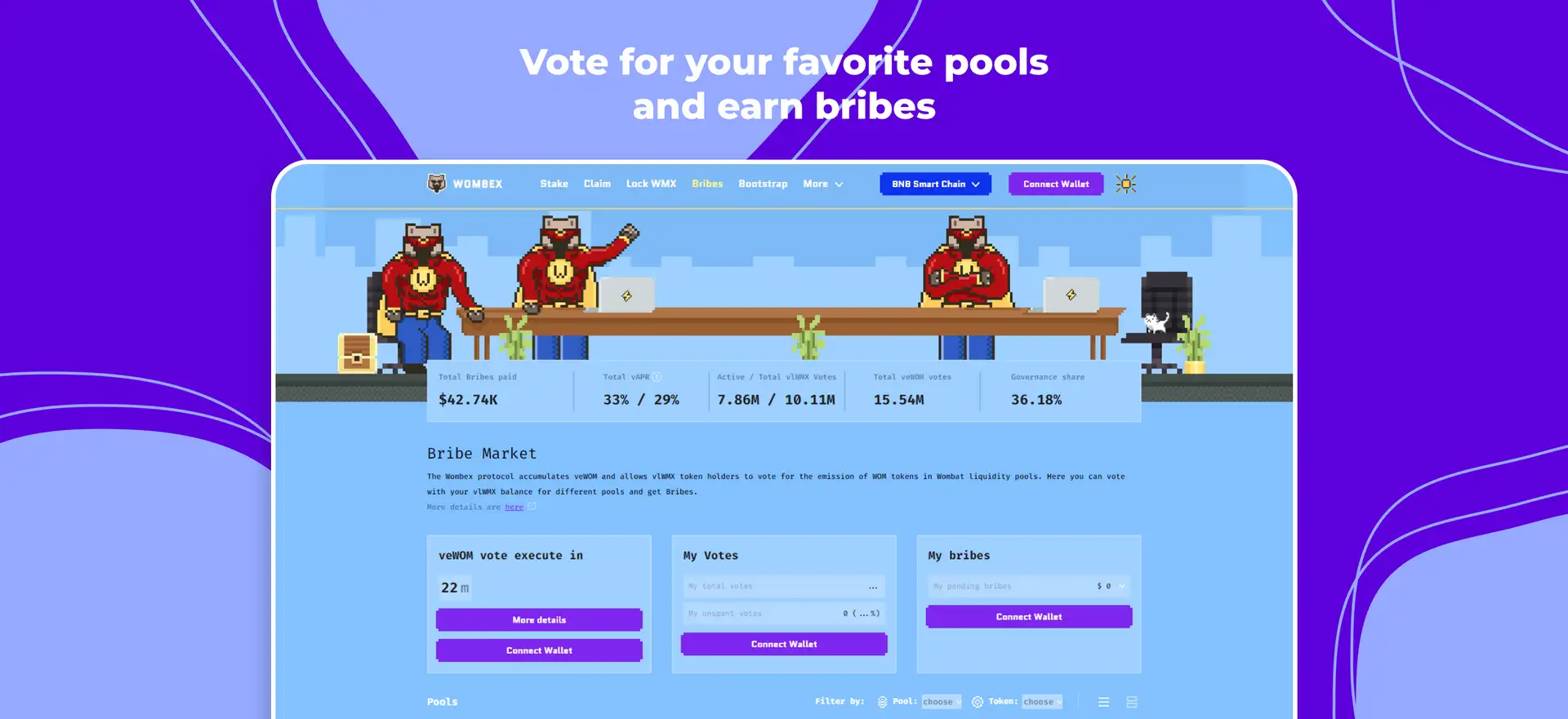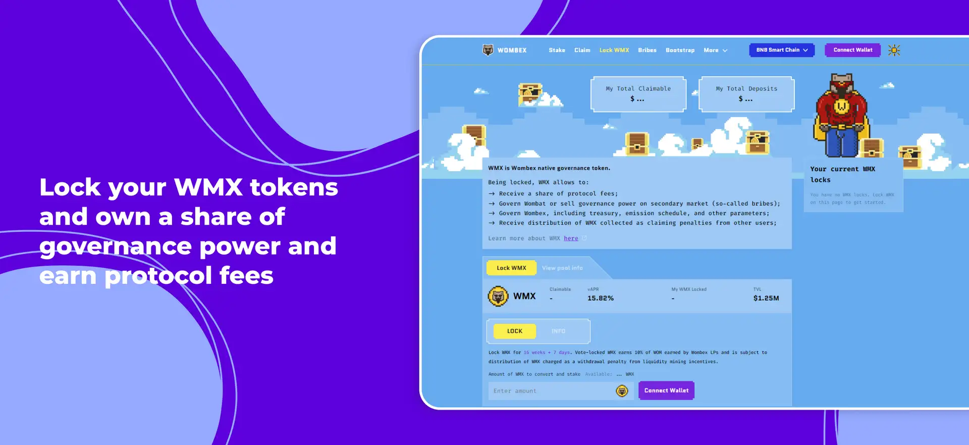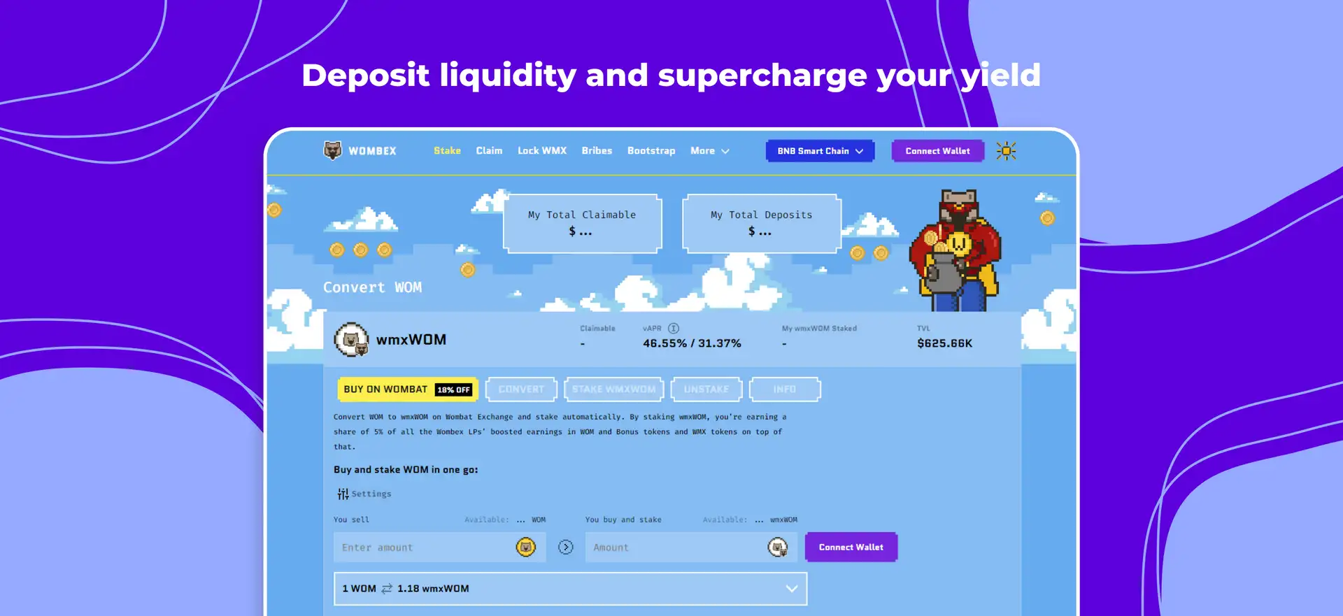Seamless Integration with Wombat Exchange: The platform integrates directly with the Wombat Exchange, allowing users to easily provide liquidity and stake assets. This integration streamlines the process of yield farming, making it more accessible and efficient for all users.