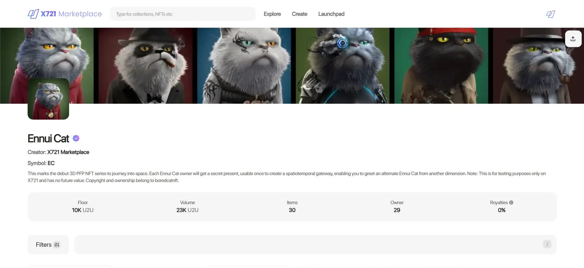 The vision behind X721 Marketplace is to create a dynamic ecosystem where creators can showcase their digital art and assets securely, while users can interact with NFTs in a highly accessible way. The project’s mission is to democratize the NFT space, allowing for wider adoption of decentralized technologies, particularly within the U2U network. By offering no-code tools, the marketplace empowers creators to bring their ideas to life without needing to navigate complex smart contract development.