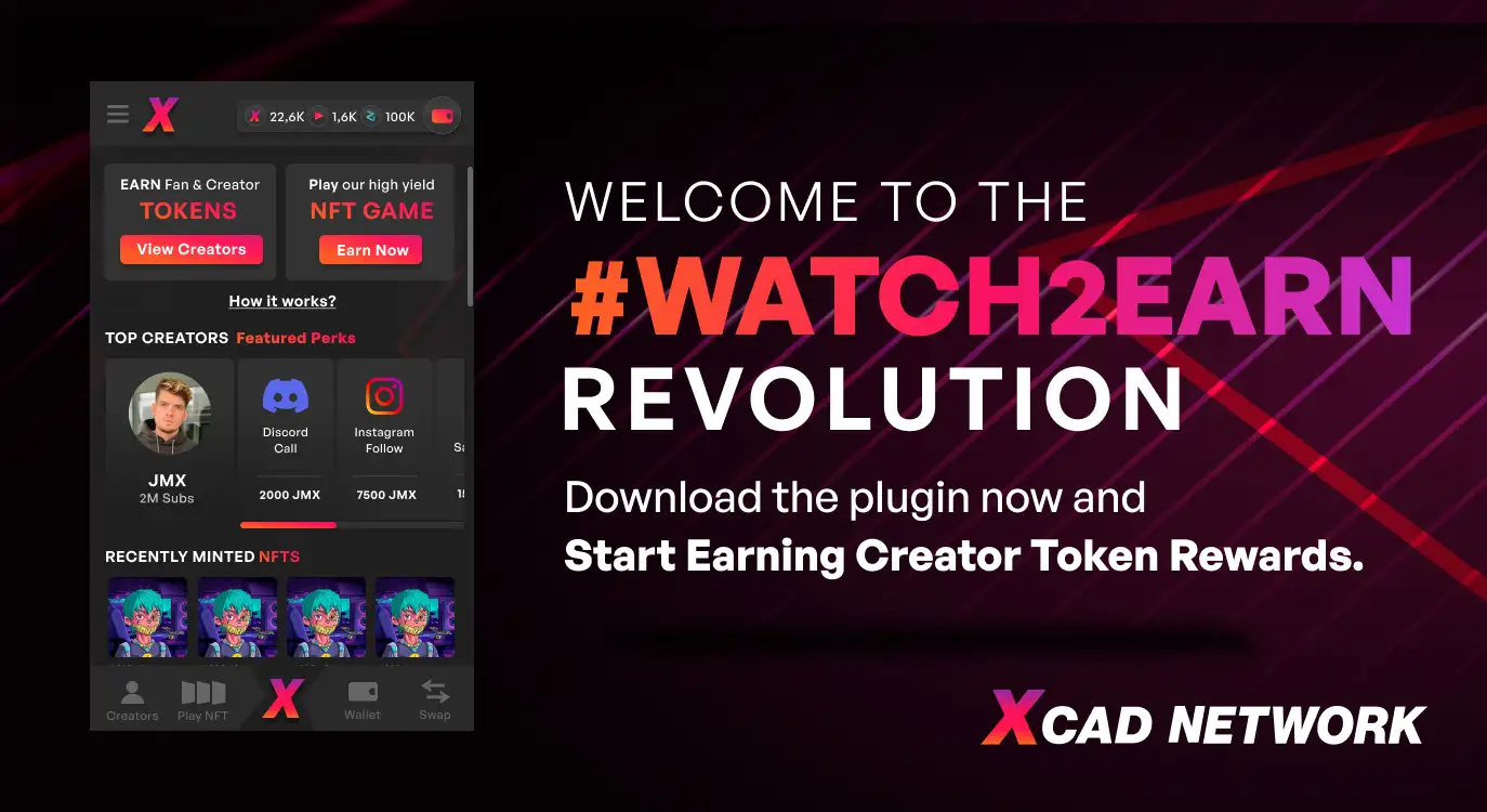 The Watch2Earn model on XCAD Network extension rewards viewers with cryptocurrency for watching content from their favorite creators. As you watch videos through the XCAD browser plugin, you earn creator tokens that can be traded or used for exclusive content.