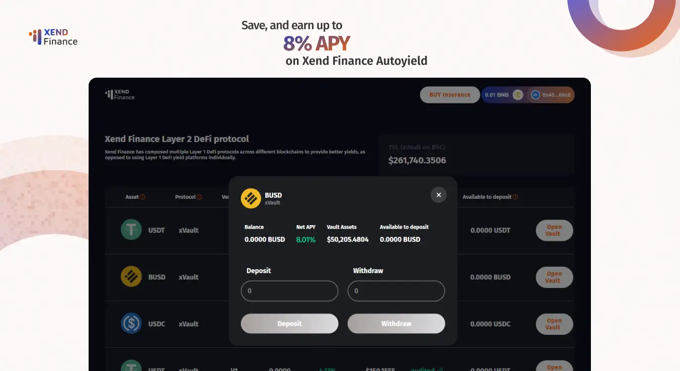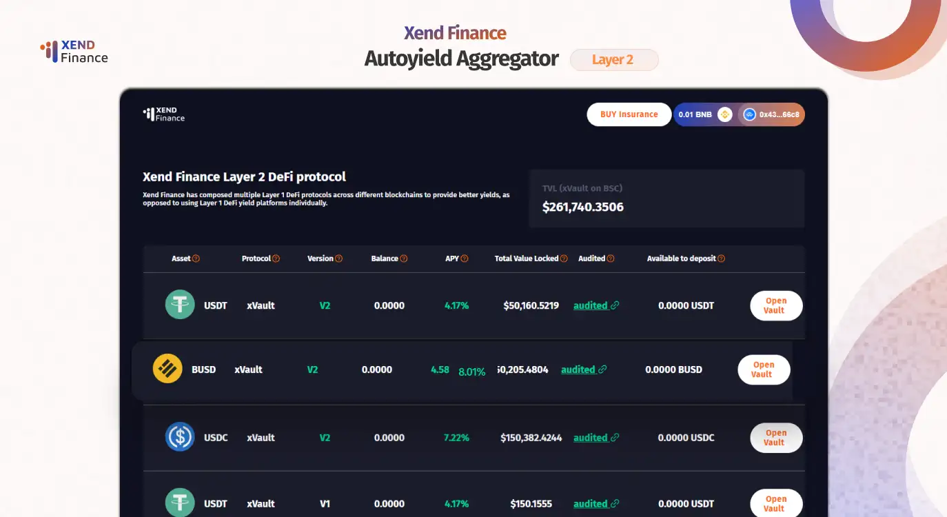 - Multi-Chain Yield Optimization: Xend Finance’s platform automatically identifies and allocates user funds to the highest yield opportunities across multiple blockchain networks. This ensures users always achieve the maximum returns on their deposits, regardless of market fluctuations.