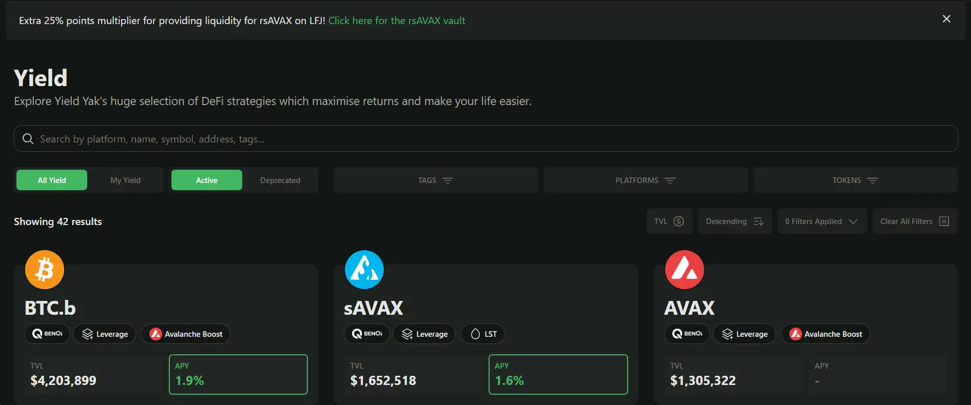 Yield Yak makes it simple for users to start earning with its optimized tools on Avalanche and Arbitrum: