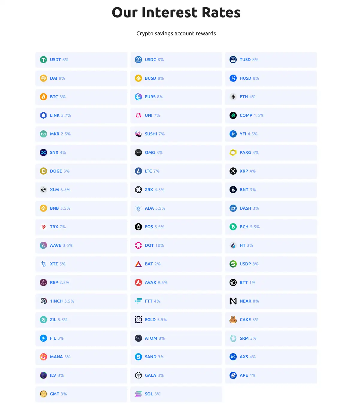 - High-Yield Savings Accounts: Users can earn significant interest on their crypto deposits, with rates much higher than traditional bank savings accounts. The interest earned can be compounded, providing users with a way to passively grow their wealth over time.