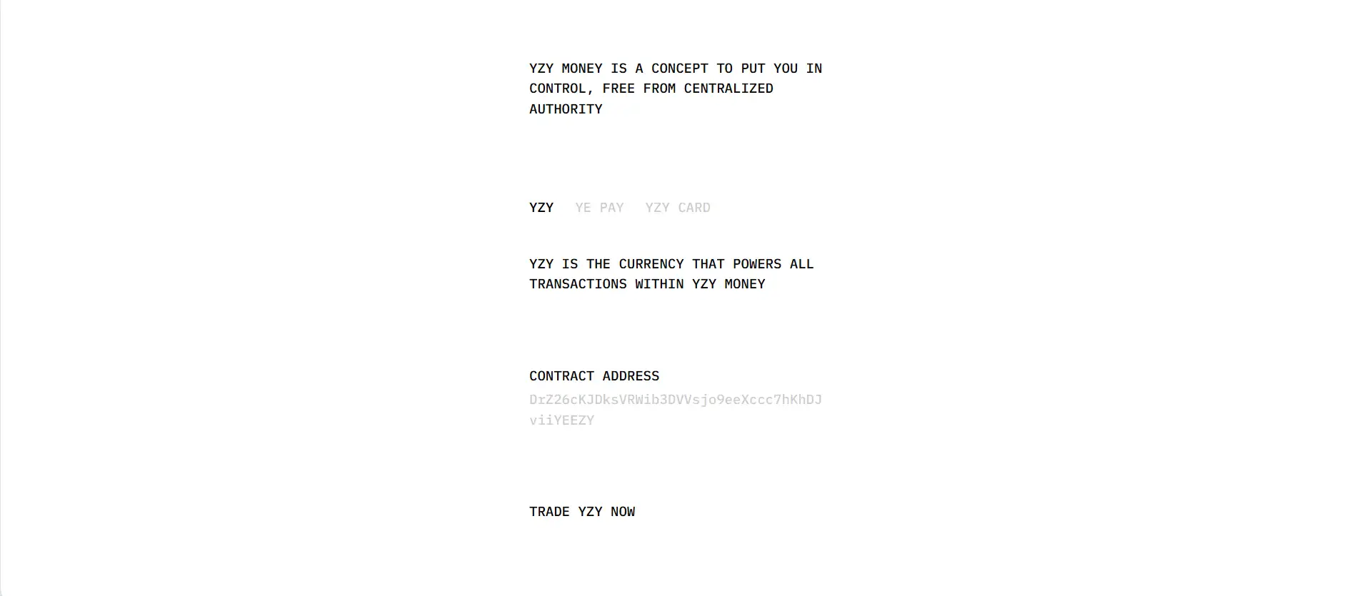 YZY Money is a new financial concept that merges decentralized finance with cultural identity, giving users autonomy over how they send, spend, and engage with value. At its core, YZY Money is a symbolic ecosystem centered on the YZY token, designed not as an investment vehicle but as an expression of engagement with the YZY identity.