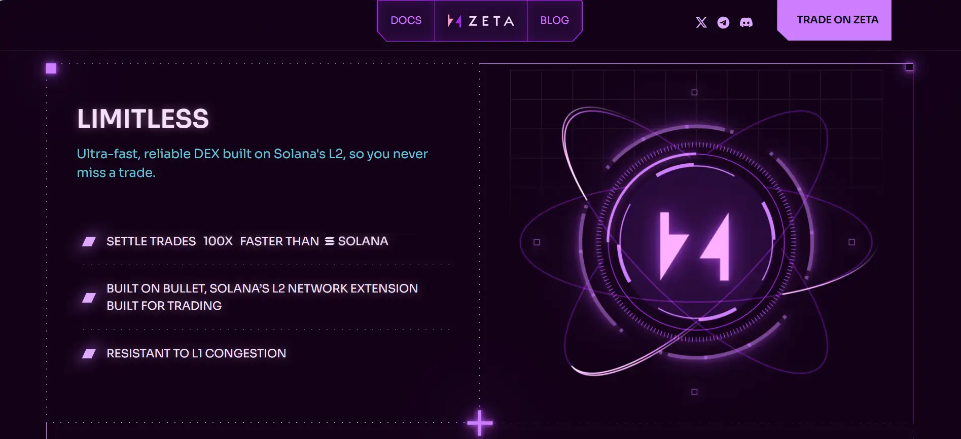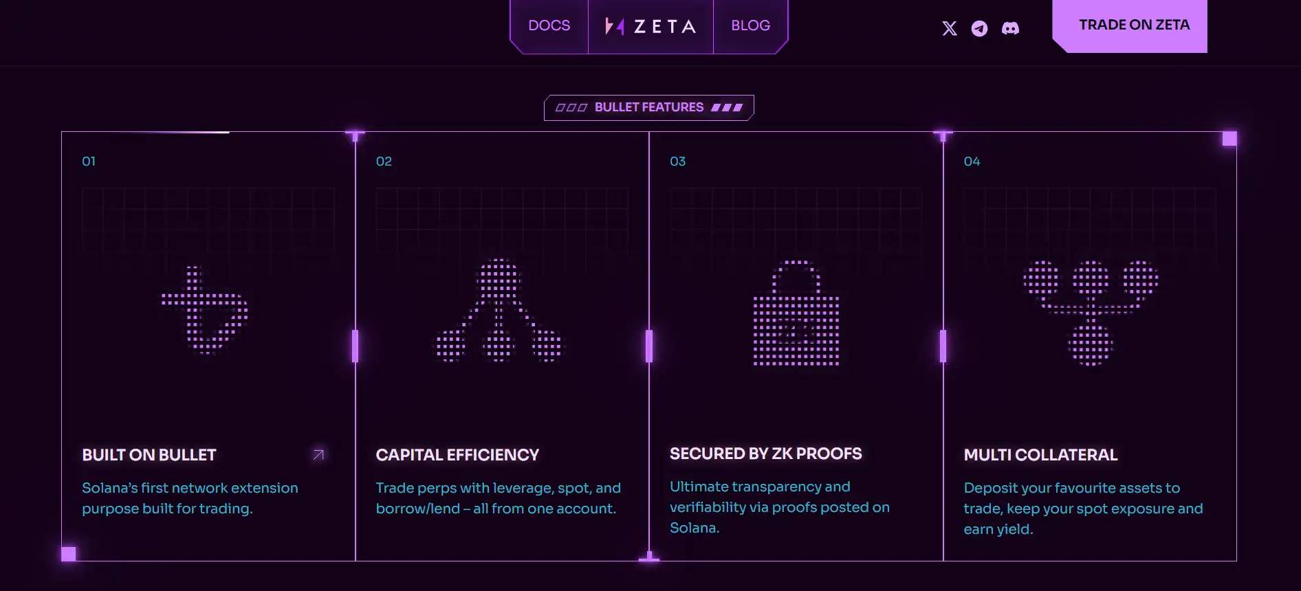 Zeta Markets, soon to be known as Bullet, is redefining on-chain trading with a cutting-edge infrastructure stack built on Solana. Designed as a high-performance network extension, Zeta Markets introduces a next-generation experience for perpetuals, spot, and lending by offering speed, security, and capital efficiency previously unseen in DeFi. Bullet leverages zero-knowledge proofs for trustless verification and is built to thrive in the most volatile market conditions.